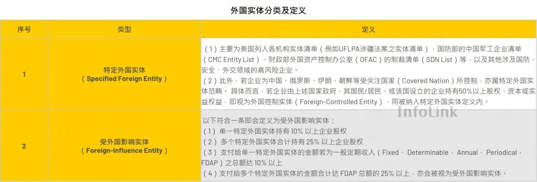 新增被禁止外国实体(ProhibitedForeignEntity)规定